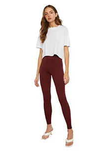 Trendyol Damskie bordowe legginsy z dzianiny z wysokim stanem, Burgund, L