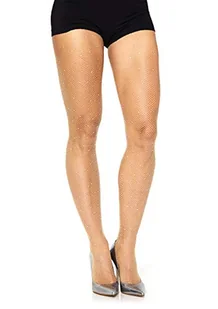 LEG AVENUE 9016 - siateczka na ryby, rajstopy z kamieniami stras, akcenty, rozmiar uniwersalny, nude