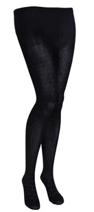 Jedna para delikatnych, czarnych rajstop w powtarzający się wzór srebrnych kropek. Bardzo wygodne, nieuciskowe, wykonane z miękkiego i miłego w dotyku materi...