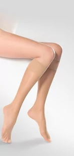 Podkolanówki gładkie 15 den wykonano z elastycznych włókien, które dopasowują się do kształtu nóg nie powodując ucisku. Podkolanówki super bezuciskowe są dostępne w kilkunastu wariantach kolorystycznych, z których każdy to klasyka mody. Do wyboru są: czarne podkolanówki (nero) przez naturalne, cieliste podkolanówki w kilku odcieniach (melisa, nocciola, sable, caramel, opal), kolorowe podkolanówki (smoky, grafit, lyon) a także eleganckie białe podkolanówki (bianco). W jednym opakowaniu są dwie pary podkolanówek super bezuciskowych.