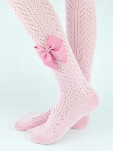 Rajstopy bawełna ażurowe z kokardką pudrowy róż 116-122 cm