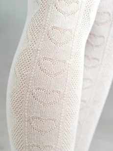 Rajstopy bawełniane białe z żakardowym wzorem serca 80-86 cm Materiał: bawełna 78%, poliamid 20%, elastan 2% Wzrost: 80-86 cm Obwód bioder: 50-54 cm Wyprać p...