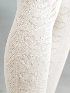 Rajstopy bawełniane ecru z żakardowym wzorem serca 92-98 cm