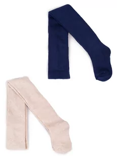 Rajstopy dziecięce bawełniane frotte beżowo-granatowe 2PAK 128-134