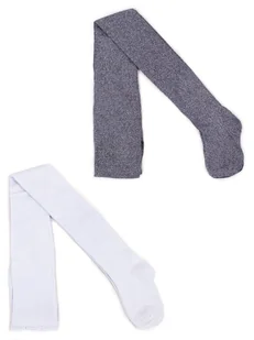Rajstopy Dziewczęce Bawełniane Z Lurexem Ciemnoszaro-Białe 2Pak 128-134 Yoclub