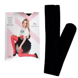 Rajstopy dziewczęce 40 DEN Polskiej firmy Noviti Rajstopy niemowlęce w kolorze czarnym wykonane z mikrofibry. Lekko kryjące. Idealne uzupełnienie dziewczęcej kreacji podczas takich okazji jak chrzest, urodziny, wesele, komunia itp. Dostępne w rozmiarach 104/110, 116/122, 128/134, 140/146, 152/158 kolor: czarne grubość: