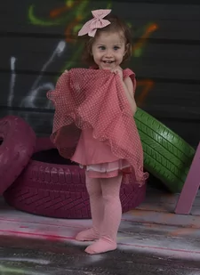 Piękne dziewczęce rajstopy wzorzyste w kropeczki z doszytą kokardką. Wykonane z przędzy bambusowej z doszytą aplikacją . Skład surowcowy: Wiskoza (włókno bambusowe) 79%, Poliamid 18%, Elastan 3%.