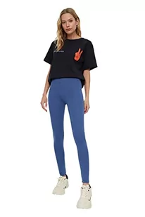 Rajstopy z dzianiny z wysokim stanem, legginsy damskie z dzianiny, Niebieski, XS