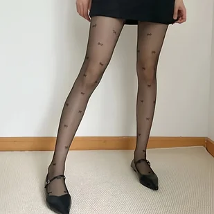 TEMU 1 Para Damskich Seksownych, Przezroczystych Rajstop, Z Motywem Kokardki, 85% Poliamidu I 15% Spandexu, Dzianiny, Geometrycznego Wzoru,