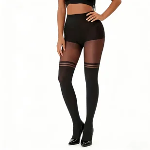 TEMU Damskie czarne rajstopy w paski z patchworkiem, 1 para. Miękkie, przyjazne dla skóry i oddychające, nie powodujące się. Wysoki stan, modelujący