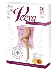 Veera Przeciwżylakowa Rajstopy 70den KarmelRajstopy 70 denI stopień ucisku 13-17 mmHgEleganckie rajstopy Veera ze stopniowanym uciskiem. Poprawiają krążenie i perfekcyjnie modelują sylwetkę. Stosowane w profilaktyce i przy pierwszych problemach z krążeniem. Nadają lekkości nawet najbardziej zmęczonym nogom. Przynoszą szybką i skuteczną ulgę w przypadku pierwszych objawów osłabionego krążenia, takich jak: obrzęk, zmęczenie nóg, uczucie ciężkości nóg, pajączki (pękające naczynka).Są testowane klin