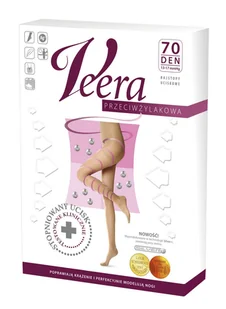 Veera Rajstopy Przeciwżylakowe 70 den Kolor SoleiRajstopy 70 denI stopień ucisku 13-17 mmHgEleganckie rajstopy Veera ze stopniowanym uciskiem. Poprawiają krążenie i perfekcyjnie modelują sylwetkę. Stosowane w profilaktyce i przy pierwszych problemach z krążeniem. Nadają lekkości nawet najbardziej zmęczonym nogom. Przynoszą szybką i skuteczną ulgę w przypadku pierwszych objawów osłabionego krążenia, takich jak: