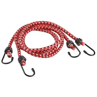 Gumy ściągające 8 mm x 100 cm 7 kg 2 szt. czerwona Standers to idealne rozwiązanie stosowane do bezpiecznego mocowania przedmiotów, bagażu, pudełek do wózka ręcznego lub do bagażnika samochodu. Pasują do większości nietypowych załadunków. Produkty wykonane są z elastycznej i sprężystej gumy. Na końcach gumy znajdują się metalowe haczyki.