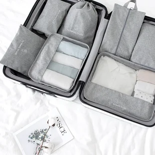 ORGANIZER PODRÓŻNY SZARY ZESTAW 7szt. ORGANIZERÓW POJEMNY DO WALIZKI TORBY WYTRZYMAŁY