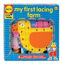 ALEX A1457M Nauka nawlekania - FARMA Zestaw 4 zwierzątek i 5 kolorowych sznurówek do nauki sznurowania. Zwierzątka wykonane z grubej tektury. 0731346145710 N...