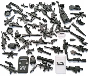 Duży zestaw broni do figurek - nr 0025 Rabat 30% na każdą trzecią sztukę. W zestawie znajduje się ok. 50-70 szt. broni widocznych na przykładowych zdjęciach poniżej. Poszczególne rodzaje broni mogą się nieznacznie różnić od siebie i przedstawionych zdjęć w zależności od danej partii. W sprzedaży klocki pasujące do innych popularnych wzorów, to wysokiej jakości zamiennik.