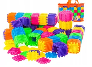 Klocki konstrukcyjne 182 elementy - kwadraty klocki konstrukcyjne są idealne, dla dzieci, które dopiero zaczynają swoją przygodę z klockami, uczą się układać oraz dopasowywać ze sobą różne elementy i kształty klocków. Zabawa klockami budzi kreatywność, rozwija zdolności manualne, daje nieskończone możliwości i można poświęcić wiele godzin na twórczej zabawie w budowaniu przestrzennych konstrukcji. Dziecko nie układa według żadnego szablonu, a sam może konstruować wszystko co sobie wymyśli. Klocki wykonane z miękkiego plastiku i łatwo się ze sobą łączą. Pozwalają na budowanie dużych, urozmaiconych konstrukcji.