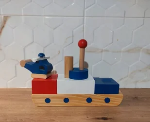 Drewniany Statek z Klocków Helikopter Small Foot Każdy mały kapitan potrzebuje statku a ten nada się idealnie dla małego wilka morskiego. Dodatkowo w zestawi...