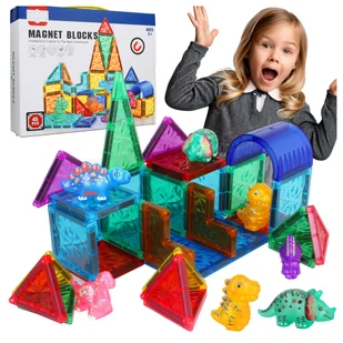 KLOCKI Magnetyczne Konstrukcyjne 3D DUŻE Magnet Block + Dinozaury Zestaw 45 elementów