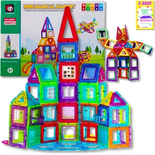 DUŻE KLOCKI MAGNETYCZNE KONSTRUKCYJNE 3D MAGNETIC DLA DZIECI 106el PANELE KONSTRUKCYJNE KLOCKI PREZENT + EBOOK