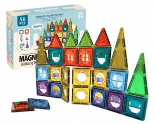 Zestaw klocków magnetycznych 56 elementów Klocki są super lekkie i bardzo trwałe. Można z nich stworzyć niesamowite budowle. Przez zabawę z klockami dziecko ćwiczy wyobraźnię przestrzenną. Klocki stymulują umiejętności manualne oraz uczą zależności przyczynowo-skutkowych. Doskonale działają na sensorykę oraz zmysły: