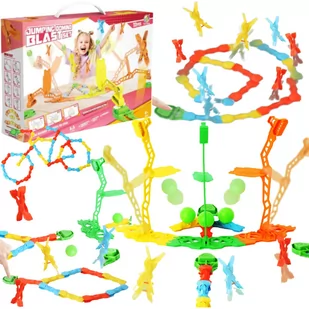 Edukacyjny Zestaw Kolorowe Klocki Domino Skaczące Klipsy Kulki 72 Elementy
