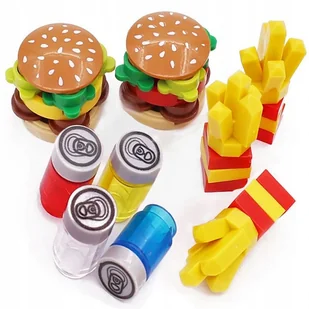 Zestaw - jedzenie i napoje - nr 0010 W zestawie 10 szt. produktów. Rabat 30% na każdy trzeci zestaw. Super cena produktu i pełna kompatybilność z popularnymi klockami. W zestawie znajduje się 10 losowych akcesori, w tym hamburgery z Maca, zestawy frytek z KFC i puszki napojów do zapicia w trakcie jedzenia : ) Wszystko do złożenia z pojedynczych klocków.
