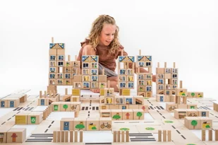 Duży zestaw Just Blocks CITY zawiera 324 elementy: 24 Średnie płytki z nadrukiem 48 Dużych płytek z nadrukiem 120 Klocków podstawowych z grafiką 100 Palików ...