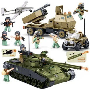 oraz Ciężarówki 14,9 cm. długość. Oprócz klocków, w zestawie znajdują się również sześć figurek czołgistów wraz z pełnym wyposażeniem. Dzięki nim będziesz mógł odtworzyć autentyczną atmosferę pola bitwy, umieszczając ich wewnątrz czołgu lub ustawiając na zewnątrz. Naklejki sprawią że Twój model będzie niepowtarzalny. Chcesz dodać trochę akcji do swojej kolekcji klocków ? Kilka informacji o marce SLUBAN i ich produktach Bardzo dobra jakość wykonania, kompatybilność z innymi znanymi markami i rewelacyjna cena.