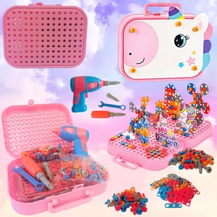 Twórz świat jednorożców w zestawie wszystko co potrzebne. Układaj różne budowle np. domki, drzewa i inne kolorowe miejsca. Skręcaj elementy za pomocą narzędzi dołączonych do zestawu. Kolorowe śrubki, nakrętki i klocki sprawią że mały świat stworzony przez ciebie będzie niezwykle pozytywny.
