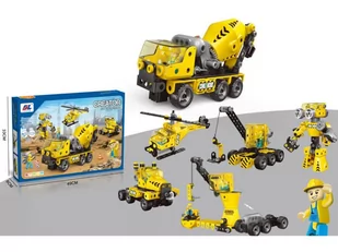Klocki Konstrukcyjne 193 El. Maszyny, Pojazdy Budowlane, Ciężarówka, Betoniarka, Helikopter Do Rozkręcania I Skręcania 6w1