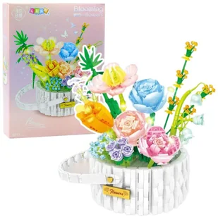 Klocki Konstrukcyjne Kompozycja Kwiatowa W Koszyku Światła Led 1376 El.