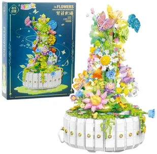 Klocki Konstrukcyjne Kompozycja Kwiatowa Z Motylami Światła Led 1399 El.