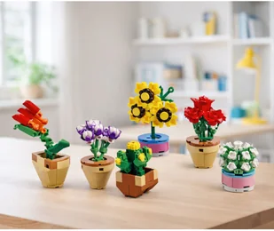 Klocki Konstrukcyjne Kwiaty Roślinki w Doniczkach 6 Sztuk 256 el.