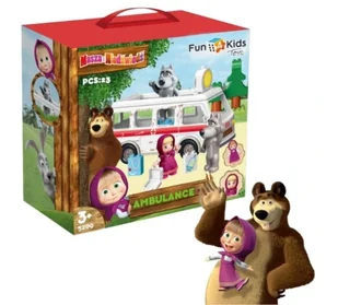 KLOCKI KONSTRUKCYJNE MASZA I NIEDŹWIEDŹ AMBULANS 23 ELEMENTY FUN4KIDS Daj swojemu dziecku najlepszy start w świat nauki i zabawy z zestawem klocków "Masza i ...