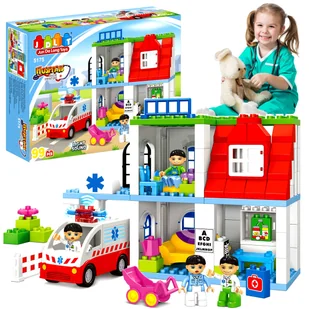 Bezpieczne, duże elementy idealne dla małych rączek ✨Możliwość powiększenia zestawu ✔️ Zestaw jest kompatybilny z popularnymi klockami dla małych dzieci ✨Zawartość zestawu: Elementy do zbudowania szpitala z dachem i pokojami Ambulans z funkcją świateł i dźwięku 3 figurki (personel i pacjent) Wózek dla pacjentów Apteczka, sprzęt medyczny, leki Klocki dekoracyjne: łóżko, sofa, kwiaty, plansza okulistyczna Klocki krajobrazowe – roślinność, ogrodzenie ✨Zalety produktu ✔️ Uczy empatii i troski o innych – dziecko wciela się w rolę lekarza, pielęgniarki lub ratownika ✔️ Rozbudza wyobraźnię i kreatywność – odgrywanie realistycznych scenek medycznych ✔️ Pomaga oswoić temat wizyty w szpitalu lub u lekarza – łagodzi lęki i przygotowuje do takich sytuacji ✔️ Wspiera rozwój społeczny i emocjonalny – dziecko uczy się współpracy i rozumienia emocji ✔️ Zachęca do zabawy indywidualnej i w grupie – idealny zestaw do wspólnej zabawy z rodzeństwem ✔️ Bezpieczne i solidne wykonanie – przystosowane do zabawy dla najmłodszych ☣️Zestaw klocków konstrukcyjnych Szpital to świetny wybór dla małych lekarzy i ratowników! ☣️Łączy edukację z zabawą, rozwija ważne umiejętności i zapewnia mnóstwo radości podczas kreatywnej zabawy https://upload. cdn. baselinker. com/products/3039922/614492f9f0a18c063ed43642dbb761f6.