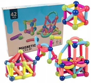 Klocki magnetyczne 42 el. edukacyjny zestaw konstrukcyjny stem