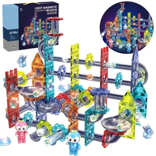 Klocki Magnetyczne Duże Eukacyjne Konstrukcyjne Świecące Tor Kulkowy 176 El.