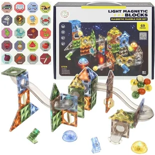 Klocki Magnetyczne Konstrukcyjne Świecące Tor Kulkowy Kulodrom Panele 69 el.