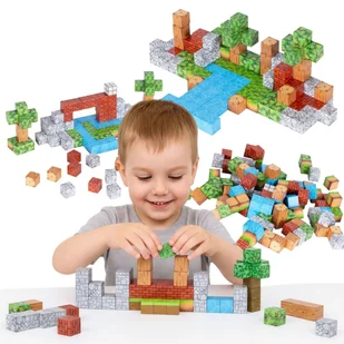 KREATYWNOŚĆ I FUNKCJONALNOŚĆ Łączenie kostek odbywa się dzięki wbudowanym magnesom, które sprawiają, że elementy szybko i samoczynnie się przyciągają. To łatwa, intuicyjna forma zabawy, która daje dzieciom satysfakcję oraz pozwala skupić się na kreatywnym tworzeniu. SPECYFIKACJA Wymiar klocków: 2x2x2 cm Grupa docelowa: +3 lata W zestawie: