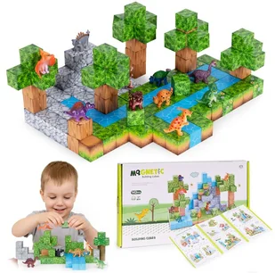 Klocki magnetyczne konstrukcyjne zestaw dla dzieci 142 elementy sześciany dinozaury