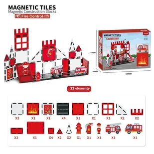 Zestaw klocków magnetycznych Zapraszamy do odkrycia fascynującego świata konstrukcji z naszym zestawem klocków magnetycznych straż pożarna! Prosta budowa dzięki zastosowanym magnesom sprawia, że nawet najmłodsi będą mogli cieszyć się tworzeniem różnorodnych konstrukcji. Kreatywność oraz zdolności manualne zostaną tu doskonale rozwinięte, a wszystko to w tematyce straży pożarnej - co może być bardziej ekscytującego dla małego miłośnika służb ratowniczych? Magnetyczny wóz strażacki i figurki W skład zestawu wchodzi nie tylko 32 elementów klocków, ale także magnetyczny wóz strażacki oraz urocze figurki strażaka. Dzięki nim maluchy będą mogły przenieść się prosto na miejsce akcji i odgrywać realistyczne scenariusze ratowania ludzi czy gaszenia pożarów. To nie tylko zabawa konstrukcyjna, ale również świetna okazja do rozwoju wyobraźni oraz empatii poprzez symulowanie sytuacji awaryjnych. Kreatywna zabawa dla dzieci Doskonała jakość wykonania klocków zapewnia trwałość i bezpieczeństwo podczas zabawy.