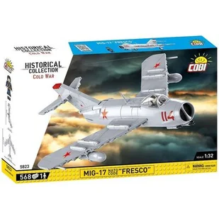 Model samolotu MIG-17 został zaprojektowany w modelarskiej skali 1:32 i składa się z 568 wysokiej jakości elementów. Wszystkie oznaczenia, emblematy i napisy znajdujące się na modelu to nadruki, które nie ścierają się w trakcie użytkowania. Zestaw posiada ruchome elementy takie jak koła oraz otwierana kabina, w której możemy umieścić rewelacyjną figurkę pilota. Szczególnie pięknie prezentuje się odwzorowany z klocków kamuflaż. Do zestawu dołączona jest podstawka ekspozycyjna zawierająca tabliczkę z nazwą zestawu i oznaczeniem przynależności państwowej. Dzięki intuicyjnej instrukcji opartej na czytelnych ikonach budowa jest prosta. Samolot to pozycja obowiązkowa dla wszystkich fanów lotnictwa, militariów i techniki wojskowej. Stanowi również doskonałe uzupełnienie kolekcji Armed Forces, Vietnam War, Cold War i Korean War. W tej serii wydaliśmy również polskie samoloty LIM-1 i LIM-5, radziecki MIG-15, czechosłowacki S-102 oraz MIG-17 w wersji dla Wietnamu, NRD i ZSRR. Klockowy zestaw został w całości wyprodukowany w Polsce na terenie Unii Europejskiej.