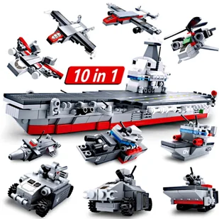 Klocki Statek Lotniskowiec Łódź Okręt 10w1 ARMY Wojsko