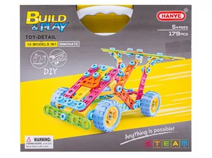 Kolorowe Klocki Konstrukcyjne 179 El. Pojazdy, Wieża, Motocykl, Auto, Odrzutowiec, Samolot Do Rozkręcania I Skręcania 10w1