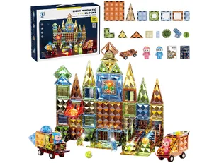 Konstrukcyjne Klocki Magnetyczne Świecące Elementy + Pojazdy 147 El.