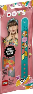 Zestaw LEGO(R) DOTS(TM) Bransoletka z papużkami nierozłączkami (41912) przypadnie do gustu dzieciom, które lubią własnoręcznie robić akcesoria do noszenia. Ten szybki, łatwy i intuicyjny zestaw oferuje dzieciom możliwość zrobienia własnej biżuterii i wielokrotnego dostosowywania jej do stroju -- lub nastroju. Wesoła biżuteria do zrobienia i przerobienia Ten fantastyczny zestaw składa się z turkusowej regulowanej bransoletki, która pasuje na większe i mniejsze nadgarstki, oraz 32 kolorowych płytek, w tym specjalnych płytek z nadrukami ptaków, piór i serduszek. Za ich pomocą dzieci mogą zaprojektować własną, niepowtarzalną bransoletkę, przećwiczyć wyobraźnię i umiejętność kreatywnego wyrażania siebie. Kreatywna zabawa dla miłośników prac ręcznych Możliwość pomysłowego udekorowania bransoletki we własny sposób zapewni dzieciom ogromną radość. Można ją dopasować do nastroju, wymieniać z przyjaciółmi albo wykorzystać do pokazywania swoich niepowtarzalnych projektów. Z tymi bransoletkami wszystko jest możliwe! Co więcej świetnie sprawdzą się one jako prezent na Boże Narodzenie, urodziny lub z dowolnej innej okazji.