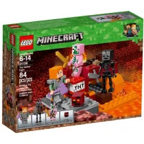 W tym zestawie czeka na Ciebie mnóstwo atrakcji: Zombie Pigman, który spróbuje Cię trafić oraz dwie postacie do pokonania: mroczny szkielet i mała kostka magmy. Jest tu też funkcja wybuchu TNT, którą trzeba włączyć przy walce w Netherze, oraz minifigurka Alexa. Wybierz się do ognistego Netheru, włącz funkcję wybuchu TNT, a potem za pomocą zaczarowanego topora pokonaj Zombie Pigmana i mroczny szkielet.