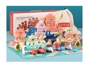 Drewniane Klocki Edukacyjne Konstrukcyjne Miasto 115 Elementów
