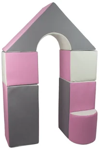 mini zamek 6 dużych klocków piankowych do zabawy żłobków przedszkoli (biały, pudrowy róż, szary)